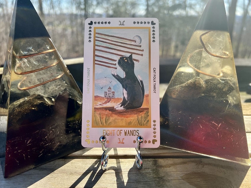 Reversed or with challenging cards around the Eight of Wands, might indicate that things are still stalled or that you haven’t done your homework or spent time in preparation so you are not as prepared as you should be. It might be that you have become too fond of your routine or have become unmotivated.