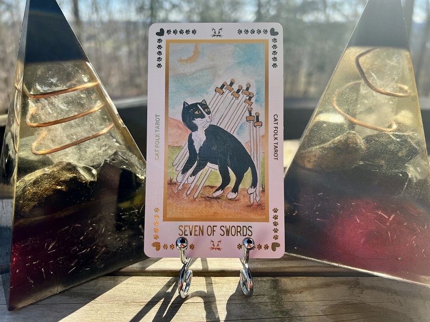 Reversed or with challenging cards around the Seven of Swords often means the opposite of its meaning in an upright position. In that case, this can indicate that you can trust what you are seeing with your own eyes or what someone is telling you. This could also indicate that where you have misjudged or unintentionally misled someone in the past, you can right that wrong or set the record straight.