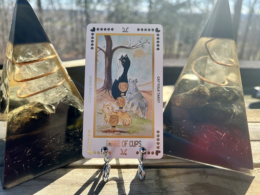 Reversed or with challenging cards around the Three of Cups, this is often a caution against over indulgence or a little too much partying and celebration. It could indicate celebrating prematurely, cautioning against jumping the gun and instead, waiting to see what eventuates.