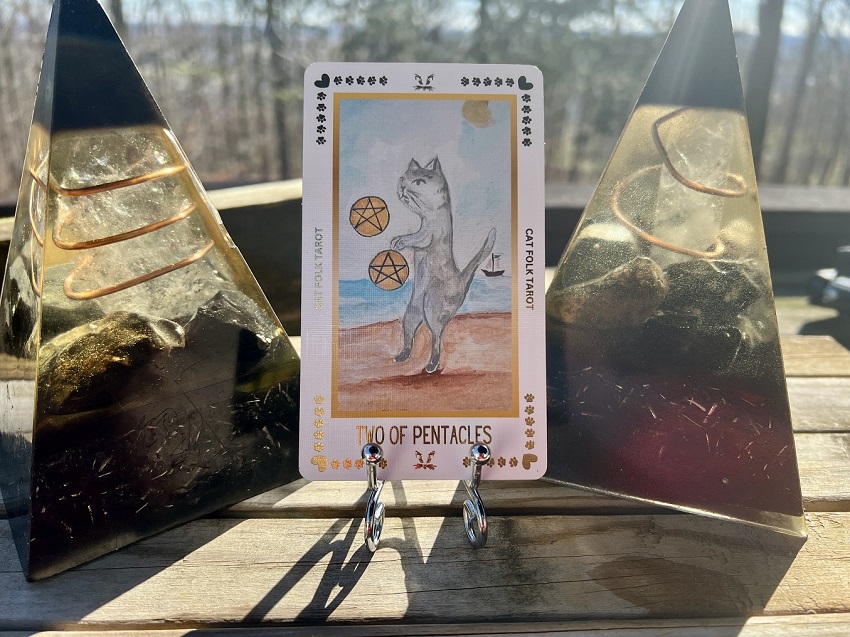 If the Two of Pentacles appears, it suggests that you are managing multiple sources of income and balancing your resources. It signifies the need to take matters into your own hands in order to achieve your goals. This card symbolizes the ongoing struggle to maintain financial stability and find a harmonious balance between income and expenses. Just like the cat in the picture, you are juggling to make ends meet. In the background we see a ship representing sailing successfully, implying that we can survive any hardships. Smooth sailing lies ahead. It emphasizes that you have the capability to make things happen and highlights the importance of taking responsibility for your financial situation. By taking proactive steps, you will attract more money and resources into your life as you tap into universal support. The Two of Pentacles reminds you that constant effort is necessary to keep things moving in the right direction, rather than passively waiting for good fortune.