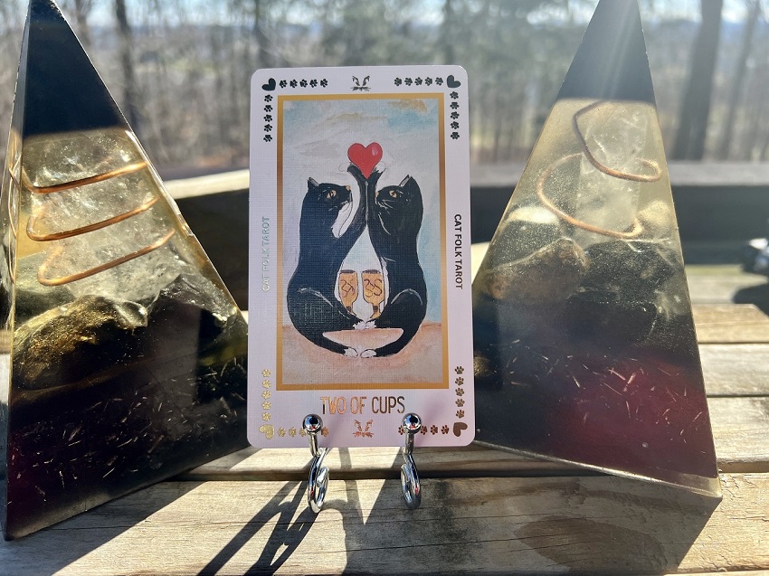 The number two signifies the convergence of two entities, or energies in any suit. However, when it comes to the Two of Cups, it also symbolizes the union of two individuals leading to the formation of a new romantic relationship. It represents a meeting of hearts that may mark the beginning of a love affair. Nevertheless, this doesn't necessarily imply the initiation of a romantic relationship alone; it could also signify the inception of a fresh friendship or a business partnership. In essence, it symbolizes the coming together of two separate beings to form a bond, whether it be a friendship, partnership, or connection. This action requires us to let go of our previous individual identity. On the card, we observe only one side of each cat, which combine harmoniously to create a unified whole. This mirrors the concept of yin and yang depicted in the Lovers card. It could signify not only new beginnings but also reconciling with someone who was previously separated but is now reunited. As Cups govern matters related to emotions and heart, this card typically signifies the unification of two. Its focus lies on coming together as an essential aspect at present rather than predicting long-term outcomes.