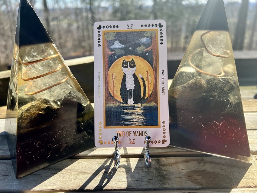 The Two of Wands represents embarking on a journey towards actualizing your goals – taking those crucial first steps towards making things happen. On the other hand, when we encounter the Ace of Wands within this card's context, it signifies an exciting new beginning while highlighting that within this Two lies our path's subsequent phases. Visualize (under the full moon gives it the most manifestation power) two branches intertwined with leaves as a powerful symbol representing how ideas converge with essential resources or materials – each branch representing diverse aspects required for success. Now is an opportune moment; you've conceived your idea meticulously and secured all necessary resources through diligent preparation – leaving no room for doubt about taking action now! Trust in your skills, talents and accumulated knowledge as you venture into uncharted territory; just like cats who exude self-assuredness without hesitation when stepping into unfamiliar realms. The appearance of the Two of Wands in a spread calls for embracing the next step, irrespective of your readiness.
